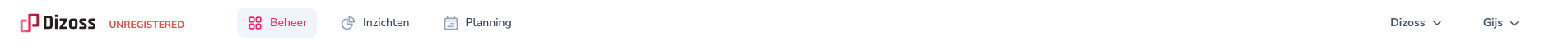Het topmenu omvat de volgende onderdelen van links naar rechts: