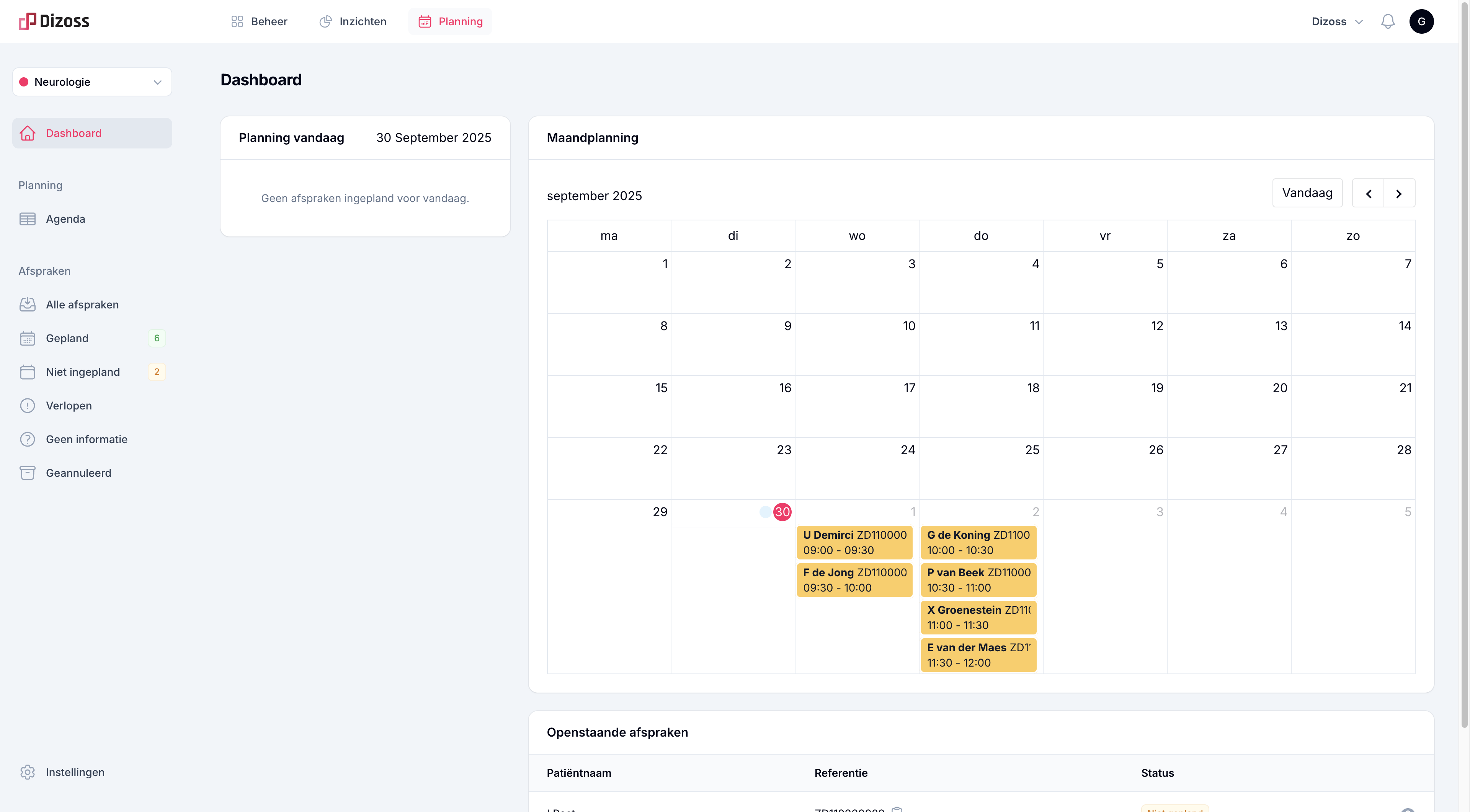 Op het dashboard is een snel overzicht te zien van de dagplanning. In een kalendarweergave is de maandplanning te zien.